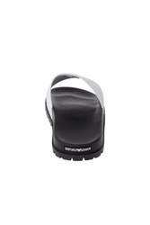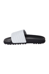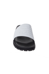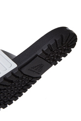 Męskie czarno-białe klapki. Na pasku duże tłoczone logo marki. Klapki wykonane z wysokiej jakości tworzywa. Lekkie i wygodne.