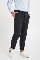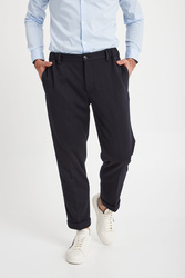 Spodnie w grafitowym kolorze. Zapinane na guziki. Elastyczny pas. Model z trzema kieszeniami. Nogawki szerokie, z kantem. Z tyłu niewielka aplikacja z logo marki. Spodnie wykonane z najwyższej jakości materiału. Stylowe i nieco awangardowe.
