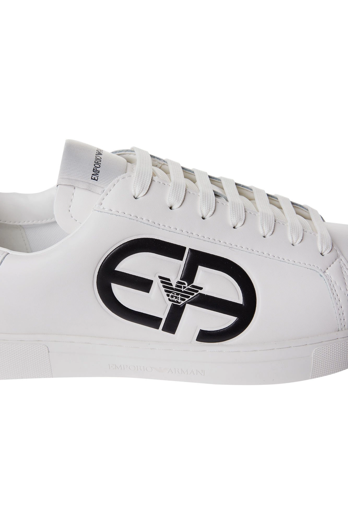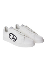 Skórzane sneakersy w białym kolorze. Wiązane na białe sznurówki. Po boku dekoracyjny haft z logo marki. Na języku logowana naszywka. Sneakersy wykonane z najwyższej jakości skóry naturalnej i wysokogatunkowego tworzywa. Lekkie i bardzo wygodne.