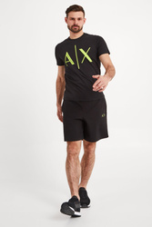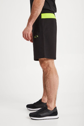 Spodenki w czarnym kolorze. W pasie szeroki ściągacz, regulowany za pomocą troczków. Z tyłu limonkowa wstawka. Po bokach dwie kieszenie. Na jednej z nich logo. Wykonane z najwyższej jakości bawełny z dodatkiem elastanu. Bardzo komfortowe, przewiewne i ponadczasowe.