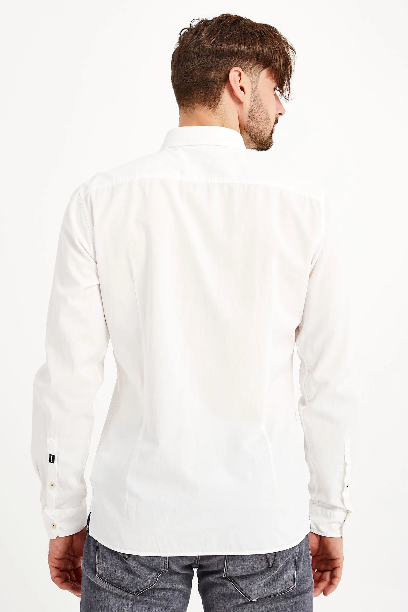 Koszula w białym kolorze o prostym fasonie. Zapinana na perłowe guziki. Kołnierzyk typu botton down. Rękawy wykończone ściętym mankietem zapinanym na jeden guzik. Z przodu niewielki haft nazwy marki. Koszula wykonana z wysokiej jakości materiału.