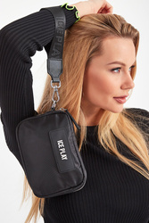 Saszetka ICE PLAY w czarnym kolorze. Na przodzie etykieta z logo marki. Jednokomorowa, zapinana na zamek. Wewnątrz saszetki dwie dodatkowe kieszenie, jedna zapinana na suwak. Usztywniane dno. Odpinany, czarny pasek na nadgarstek, z tłoczoną nazwą marki. Wykonana z wysokiej jakości, trwałego materiału. Worek przeciwkurzowy w komplecie. Modne akcesorium o szerokim zastosowaniu.