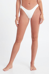 Dół od bikini marki U&B Mare Twinset w kolorze ecru. Kobiecy, podkreślający nogi krój brasiliana. Z tyłu złota aplikacja w kształcie serca z tłoczeniem nazwy marki. Podszewka w kolorze ecru, gładka. Dół od bikini wykonany z wysokiej jakości, szybkoschnącego materiału. Pięknie podkreślający sylwetkę.