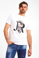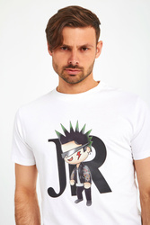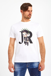 T-shirt marki John Richmond w białym kolorze. Luźny krój. Krótkie, proste rękawy zakończone lamówką. Dekolt typu o-neck zakończony ściągaczem. Z przodu duży nadruk z rockowym motywem. Wykonany z czystej, przyjemnej w dotyku, miękkiej bawełny. Idealnie sprawdzi się w każdej stylizacji, nadając jej charakteru, niebanalności i sprawiając, że nie będzie można przejść obok niej obojętnie.