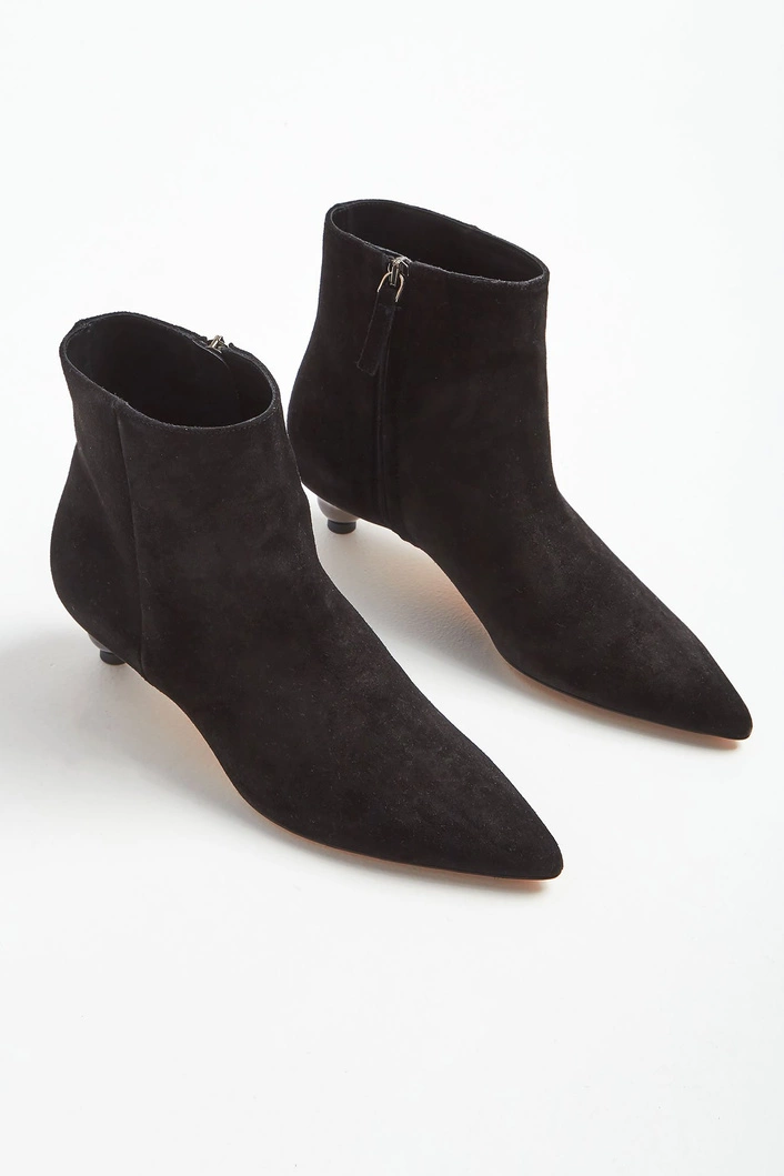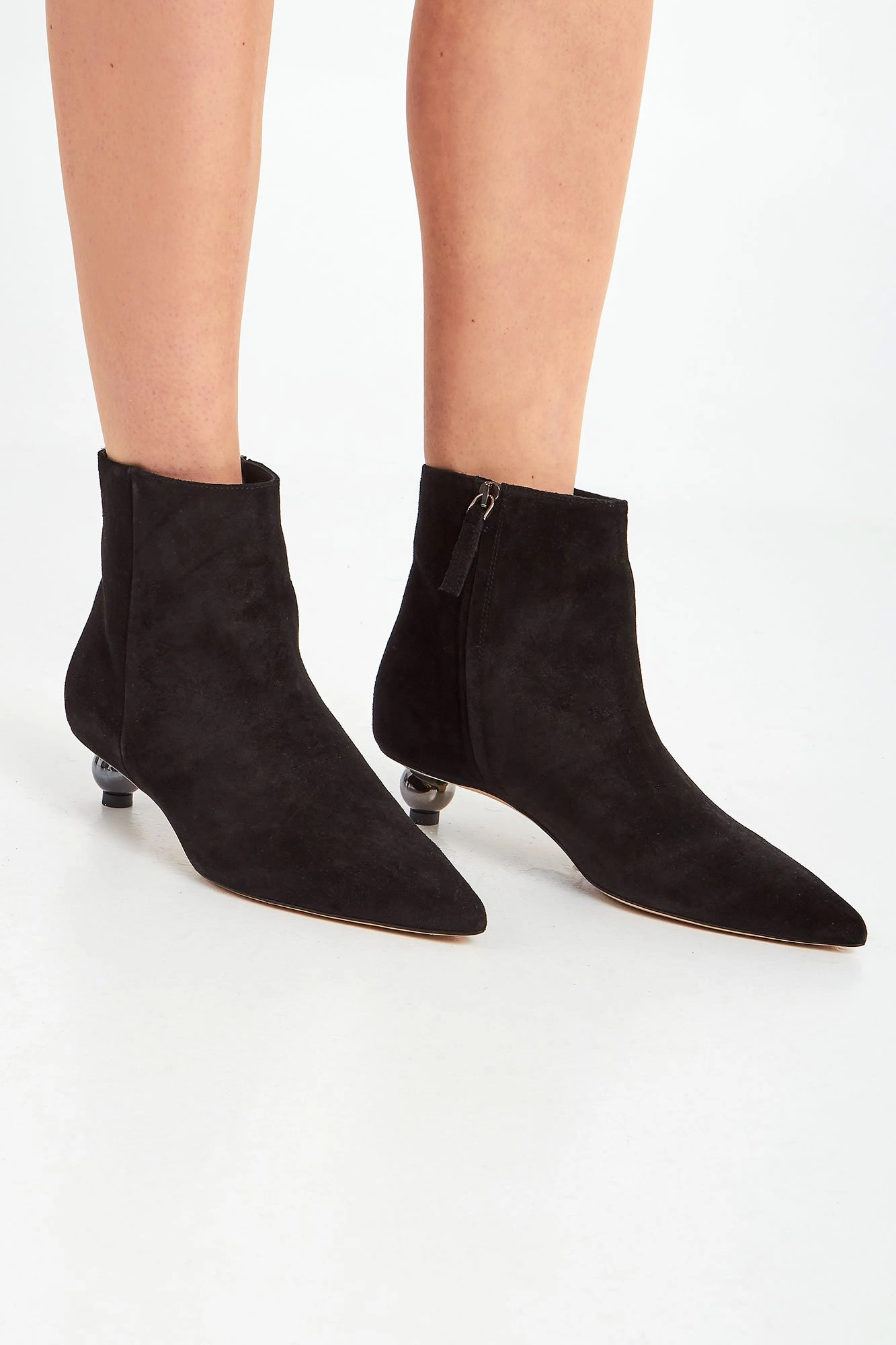 Botki do kostki marki Weekend Max Mara Z czarnej owczej skóry z czarnymi przeszyciami. Zapięcie na zamek od wewnątrz. Designerski, metalowy obcas z tłoczoną nazwą marki. Botki wykonane z wysokogatunkowej skóry. Wyściółka oraz podeszwa również wykonane ze skóry naturalnej. W komplecie worek przeciwkurzowy. Kobiece i eleganckie, urozmaicą każdy look.