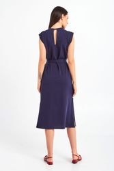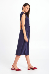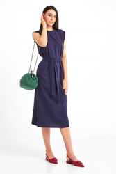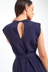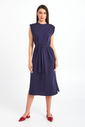 Sukienka marki Marella. Granatowa, o długim, prostym kroju. Bez rękawów. Sukienka jest częścią projektu Marella Monochrome - jednokolorowe style ze starannie dobranych materiałów. Dekolt typu o-neck zakończony ściągaczem. W komplecie pasek pozwalający lepiej dopasować sukienkę oraz podkreślić talię. U dołu, z boków rozcięcia. Z tyłu, na linii karku wycięcie w kształcie łezki oraz ozdobne przeszycie. Wykonana z czystej, miękkiej, przyjemnej w dotyku bawełny. Ponadczasowa propozycja marki Marella idealnie sprawdzi się w każdej stylizacji, nadając jej kobiecości, wdzięku oraz niebanalności.