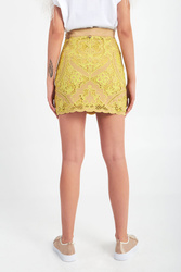 Spódnica marki Twinset. Beżowo-żółta, o długości mini. Zapinana za pomocą bocznego zamka i haftki. Na całości ozdobny, kwiatowy haft w energetyzującym, żółtym kolorze. Z tyłu, przy pasie złota, sygnowana logo marki zawieszka w kształcie serca. Wykonana z przyjemnej w dotyku, bawełnianej tkaniny. Idealnie sprawdzi się jako baza każdej wiosenno-letniej stylizacji, nadając jej kobiecości, charakteru oraz nietuzinkowości.
