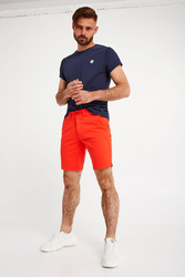 Granatowy t-shirt marki North Sails o regularnym kroju. Wykonany z czystego, bawełnianego dżerseju. Graficzny akcent w postaci biało-niebieskiej naszywki z logo marki. Dekolt typu o-neck zakończony ściągaczem. Krótkie, proste rękawy oraz dół wykończone lamówką. Propozycja od marki z żeglarską i marynistyczną tradycją w wiosennym, kolorze .