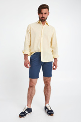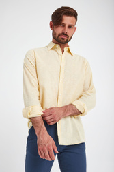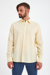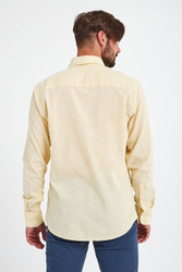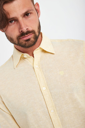 Koszula marki North Sails. Wykonana z mieszanki lnu z bawełną. W wiosennym, żółtym, energetyzującym kolorze, o kroju regular fit. Zapinana za pomocą małych, sygnowanych guzików. Klasyczny kołnierz. Na piersi graficzny akcent w postaci żółtego, wyszywanego logo marki. Długie rękawy z zapinanymi mankietami. Na plecach ozdobne przeszycie. Zaokrąglony dół. Wiosenno-letnia propozycja marki o żeglarskiej tradycji.