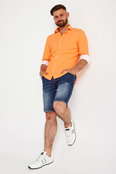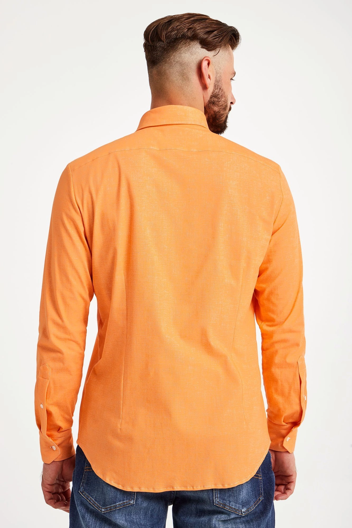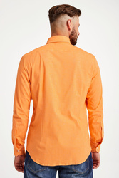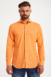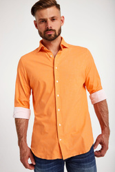 Koszula marki Emanuel Berg w intensywnym pomarańczowym kolorze. Wykonana z bawełny Jersey 4Flex zaprojektowanej przez włoską markę Albini 1876 z myślą o nieskrępowanym ruchu i wygodzie użytkowania. Zwiększona odporność na zagniecenia. Taliowany krój modern fit. Koszula i mankiety zapinane za pomocą kontrastowych, białych guzików. Na plecach ozdobne przeszycie. Idealnie sprawdzi się jako urozmaicenie codziennych stylizacji.
