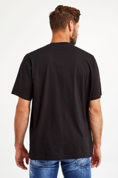 T-shirt w czarnym kolorze marki Dsquared2. Luźny fason regular, krótki rękaw. Okrągły dekolt typu o-neck wykończony ściągaczem. Z przodu duży, kolorowy nadruk z motywem lwa i nazwą marki. T-shirt wykonany z miękkiej w dotyku, czystej bawełny.