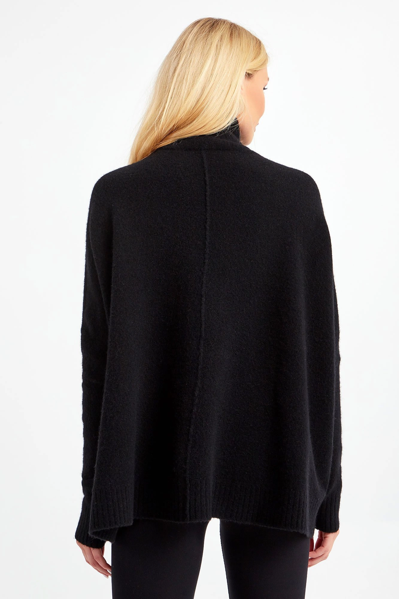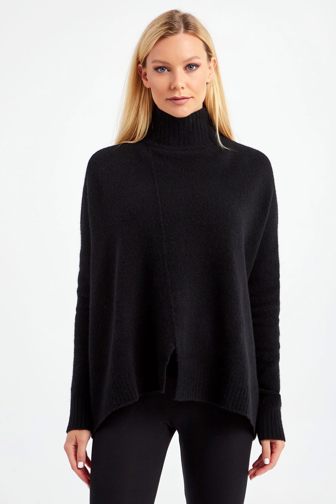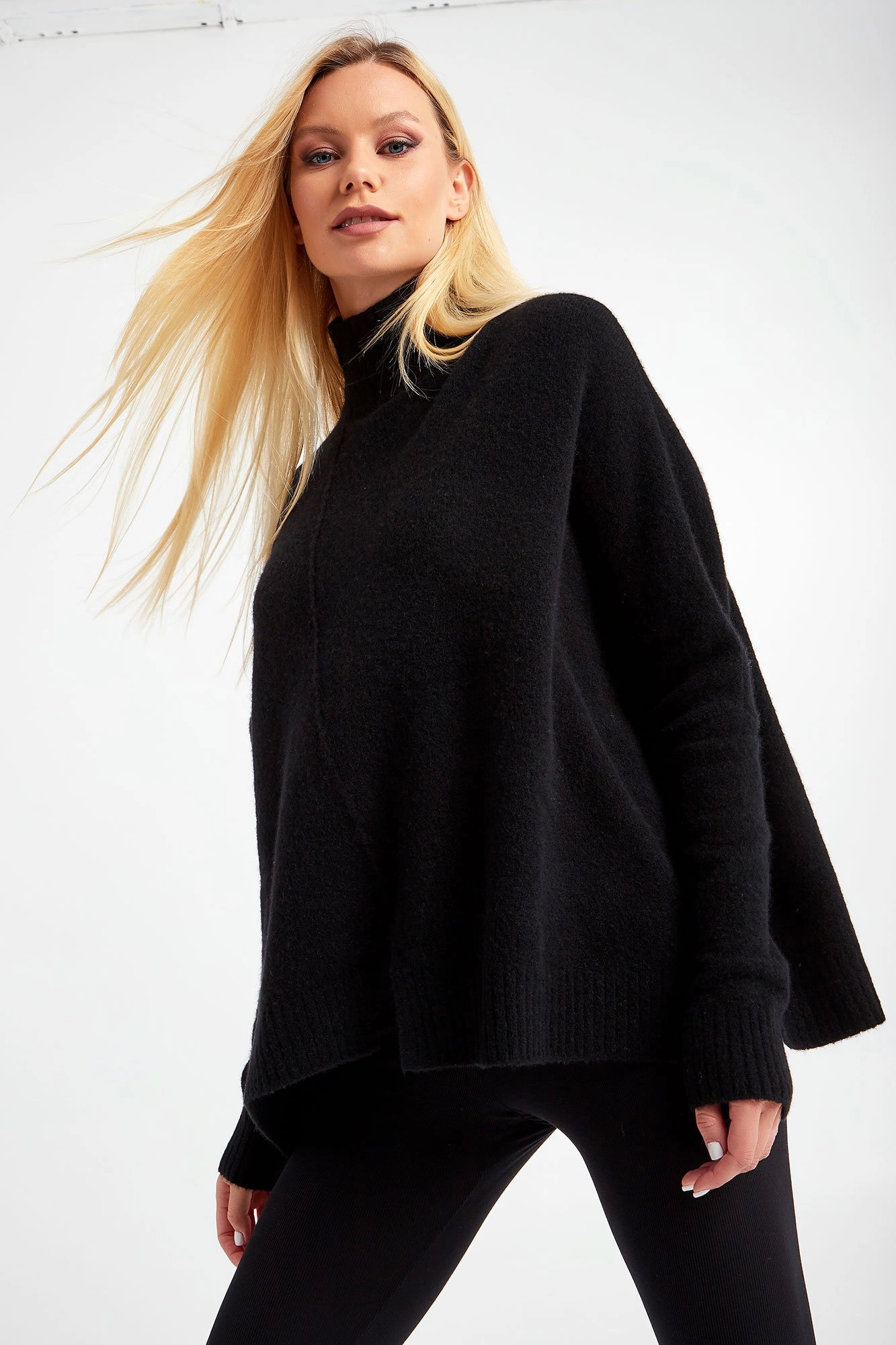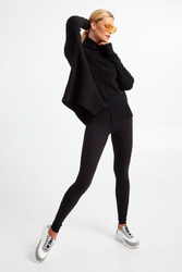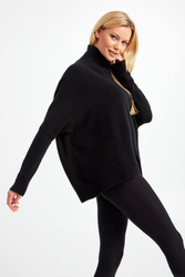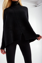 Golf marki Max mara Leisure w czarnym kolorze. Swobodny krój typu oversize. Dekolt z golfem, długie rękawy oraz dół wykończone elastycznymi ściągaczami. Z przodu oraz z tyłu ozdobne, pionowe przeszycia. U dołu rozcięcie. Wykonany z mieszanki wełn oraz elastycznych włókien.