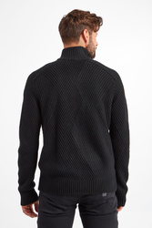 Sweter marki Armani Exchange w czarnym kolorze. Ze stójką. Fason typu regular. Całość prążkowana Góra, długie rękawy i dół wykończone ściągaczem. Zapinany za pomocą dwukierunkowego zamka w srebrnym kolorze.