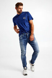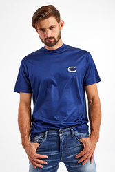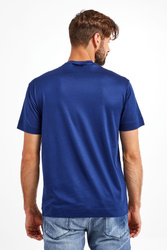 T-shirt Emporio Armani w kobaltowym kolorze. Dekolt typu o-neck. Z przodu po lewej stronie haftowane logo marki. Dekolt wykończony ściągaczem. Rękawy oraz dół wykończone podwinięciem. Przewiewny i wygodny.