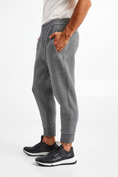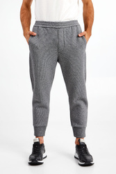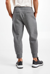 Szare spodnie marki Emporio Armani. Na całości wzór. Luźny fason ze ściągaczem w pasie regulowanym na wewnętrzne troczki. Nogawki zakończone ściągaczem wykonanym z tej samej tkaniny. Wykonane z miękkiej, elastycznej tkaniny. Model z czterema kieszeniami. Propozycja idealna do casualowych i sportowych stylizacji.