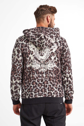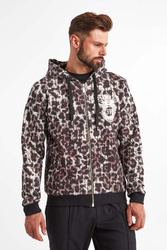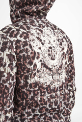 Wzorzysta, rozpinana bluza marki John Richmond. Z kapturem regulowanym za pomocą troczków, zakończonych metalową końcówką. Dół i rękawy wykończone ściągaczem. Zapinana na metalowy, srebrny zamek. Z przodu nadruk w postaci logo marki w białym kolorze oraz dwie, wpuszczane kieszenie. Na całości wielokolorowy nadruk. Bluza wykonana z przyjemnej w dotyku bawełny. Idealna do casualowych stylizacji.
