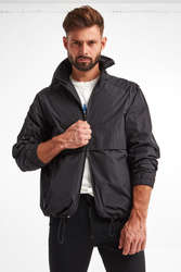 Kurtka marki Dsquared2 w czarnym kolorze. Fason typu regular. Ze stójką. Kurtka typu softshell. Zapinana na dwukierunkowy zamek. Model z dwoma zapinanymi kieszeniami. Długie rękawy i dół wykończone elastycznym ściągaczem. Dół regulowany za pomocą elastycznych troczków ze stoperem. Wewnątrz dodatkowa kieszeń.