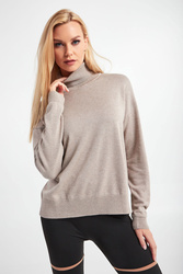 Sweter z golfem marki Weekend Max Mara w kolorze beżowym. Luźny fason typu relaxed fit. Góra, dół i długie rękawy wykończone elastycznym ściągaczem. Wykonany z materiału z domieszką wełny. Miękki i bardzo komfortowy.