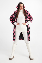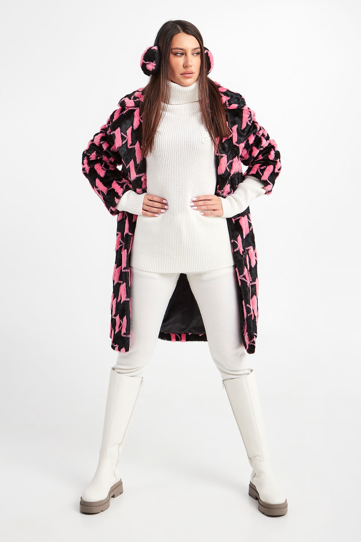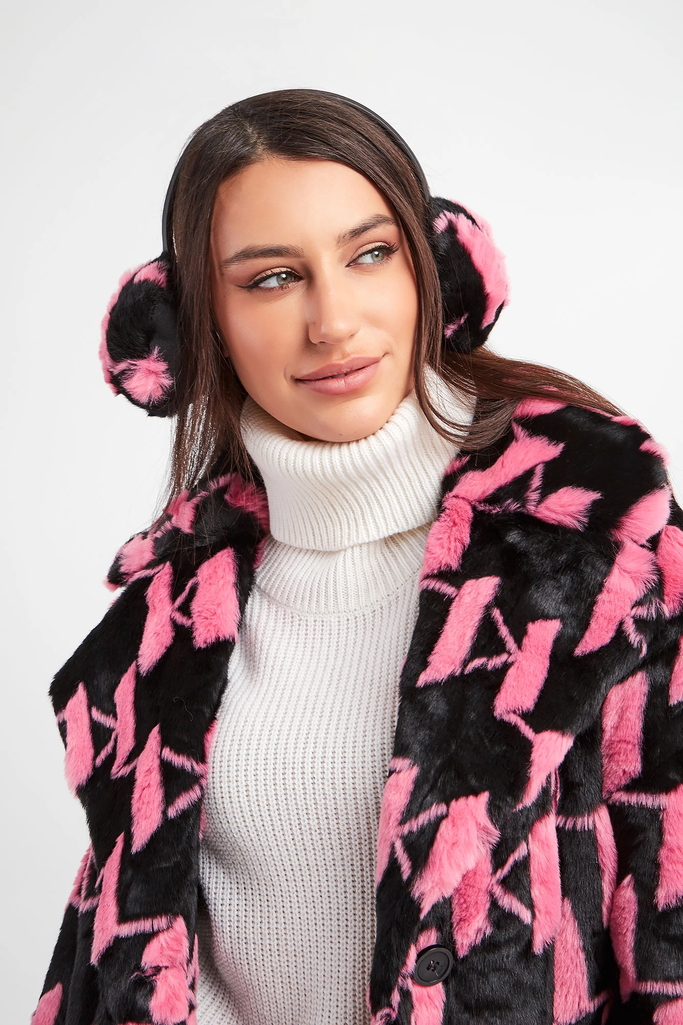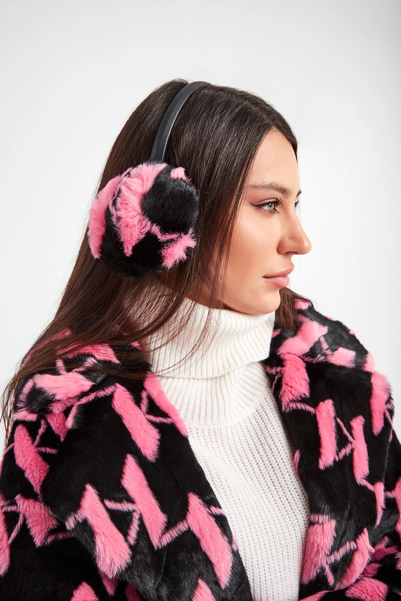 Nauszniki marki Karl Lagerfeld w czarnym kolorze. Nausznice pokryte sztucznym futerkiem z monogramem marki w różowym kolorze.