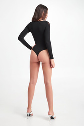 Body marki Wolford w czarnym kolorze. Dopasowany fason slim fit. Długie rękawy ozdobione wstawkami z czarnej siatki oraz perełkami. Dekolt typu o-neck oraz rękawy zakończone lamówką. Wykonane z gładkiej, elastycznej tkaniny. Niezwykle kobiece i zarazem wygodne.