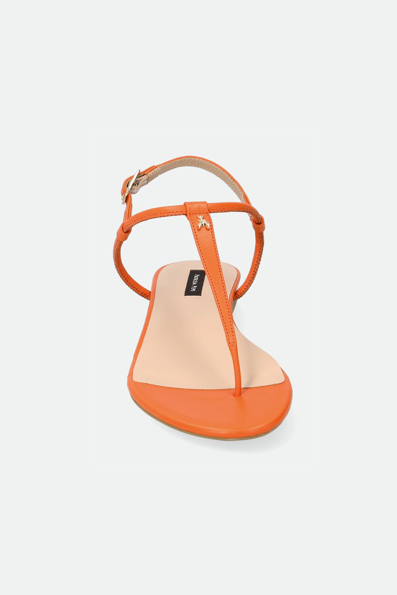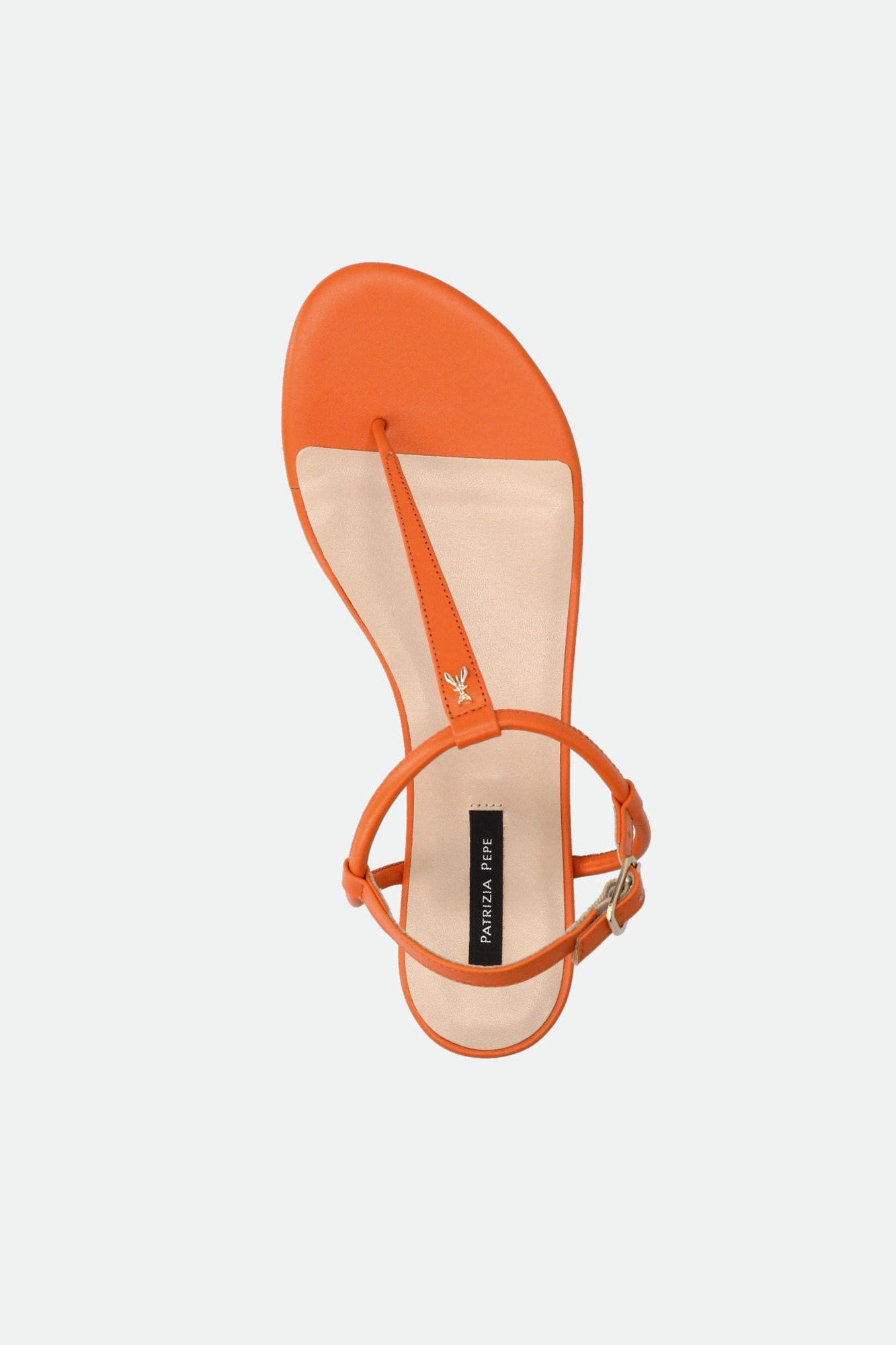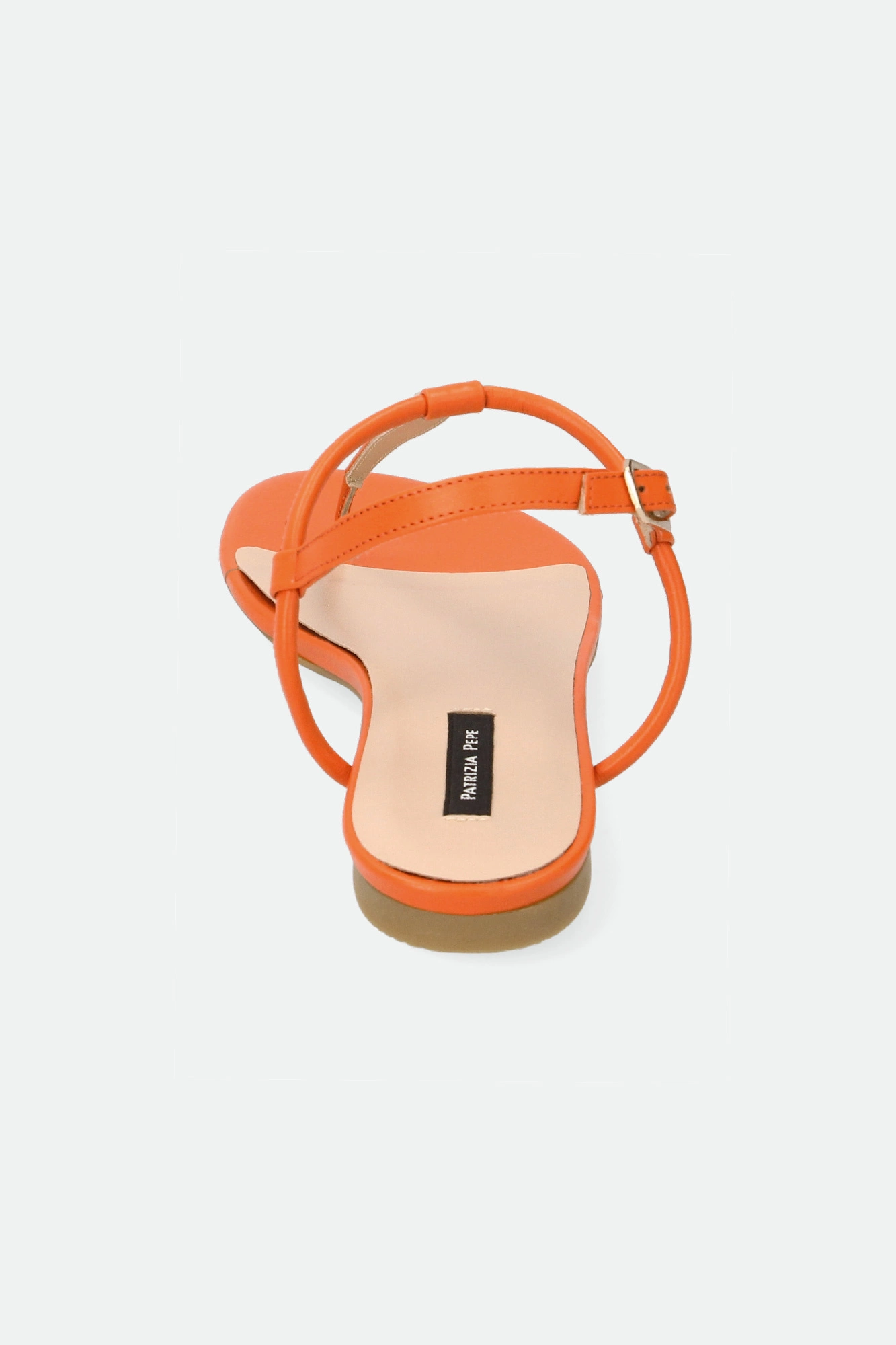 Sandały marki Patrizia Pepe w pomarańczowym kolorze. Zapinane za pomocą regulowanej sprzączki. Z przodu metalowa aplikacja w kształcie logo marki w złotym kolorze. Podeszwa sygnowana. Dobrze wyprofilowane i lekkie. Doskonałe do wielu letnich stylizacji.