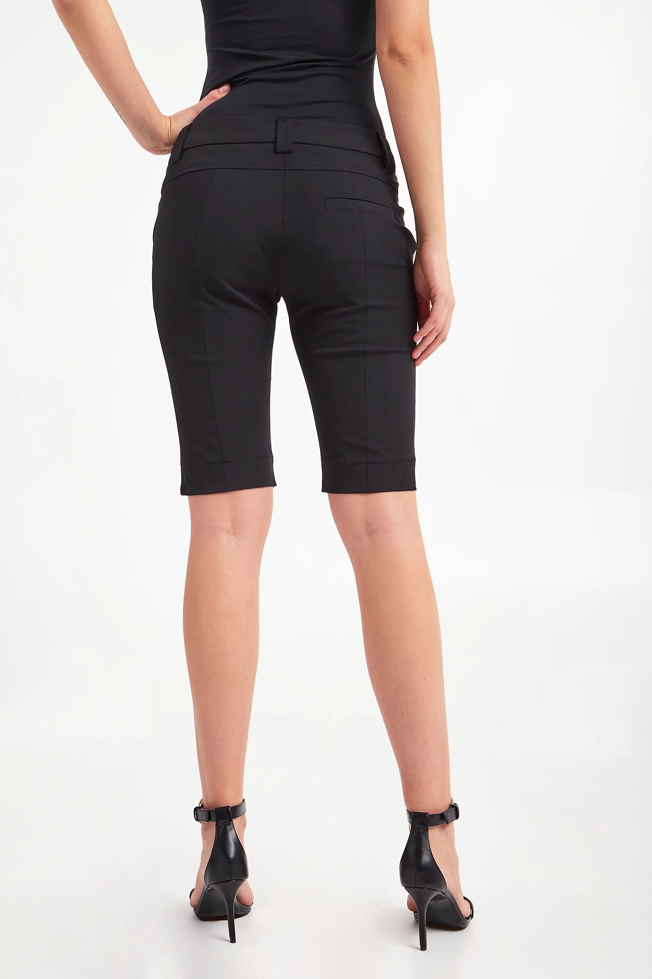 Spodenki marki Sportalm w czarnym kolorze. Fason typu slim fit. Zapinane za pomocą zamka oraz krytej haftki. Model z trzema kieszeniami. Z boku srebrna, logowana zawieszka. Nogawki wykończone szeroką lamówką. W pasie szlufki. Z tyłu nogawek ozdobne przeszycie.