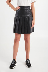 Spódnica marki Weekend Max Mara w czarnym kolorze. Wykonana z ekoskóry. Fason regular fit, długość mini, krój w kształcie litery A. Delikatnie rozszerzająca się ku dołowi. Z przodu plisy. Z tyłu pionowe przeszycie. Zapinana za pomocą bocznego, krytego zamka. Klasyka uzupełniona o rockendrollowy sznyt.