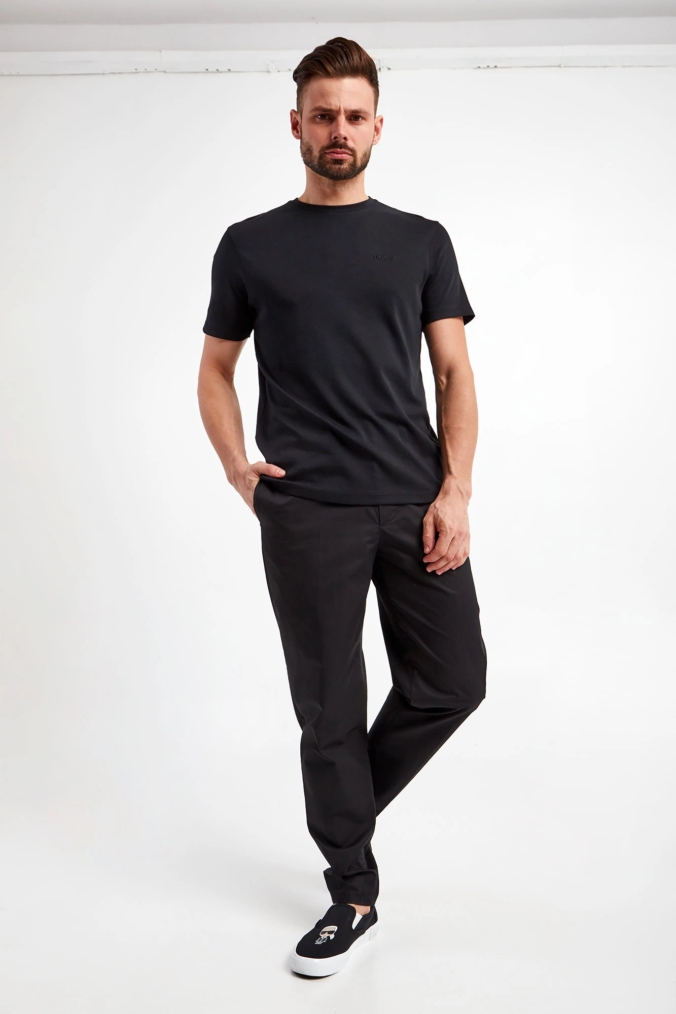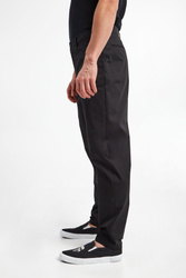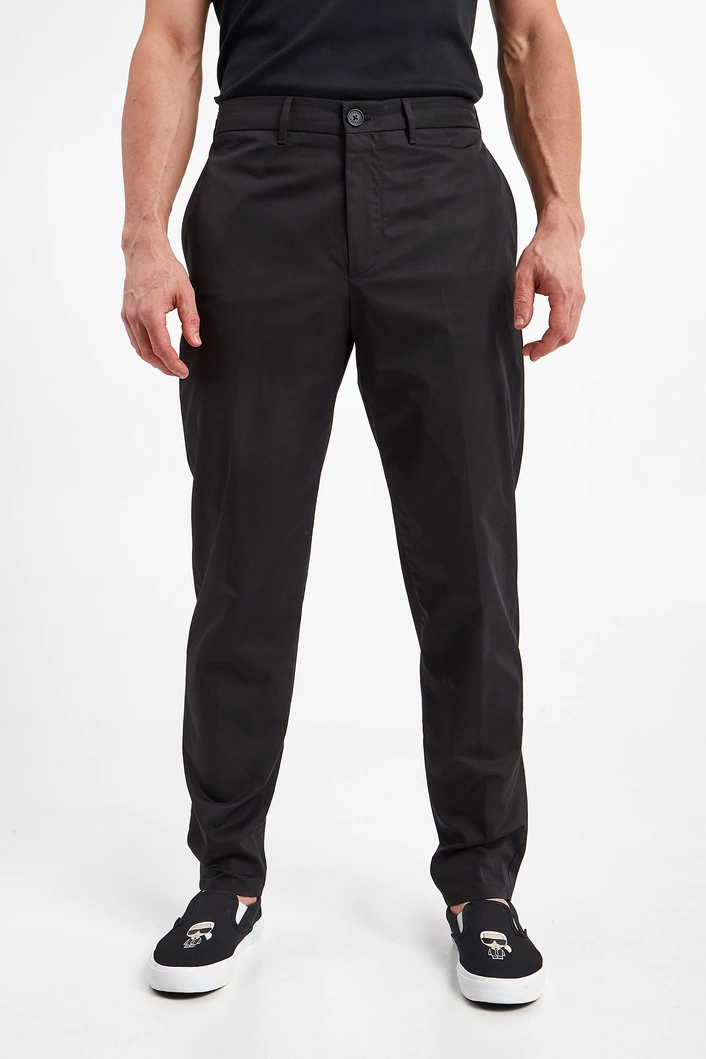 Spodnie marki Armani Exchange w czarnym kolorze. Fason loose fit. Zapinane za pomocą za pomocą zamka i sygnowanego guzika. Model z dwoma wpuszczanymi kieszeniami. W pasie szlufki. Z tyłu patki imitujące kieszenie oraz logowana naszywka. Wykonane z organicznej, bawełnianej tkaniny.