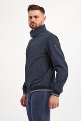 Bomberka marki Paul&Shark w granatowym kolorze. Fason regular fit. Zapinana za pomocą dwustronnego zamka z sygnowanymi zawieszkami. Dwie boczne, zamykane kieszenie. Na rękawie kolorowa naszywka z logo. Odpinany kołnierz ze stójką i zapięciem. Dekolt, długie rękawy i dół wykończone biało-granatowymi ściągaczami. Wewnątrz dwie, dodatkowe kieszenie.