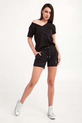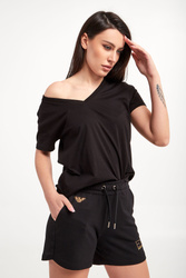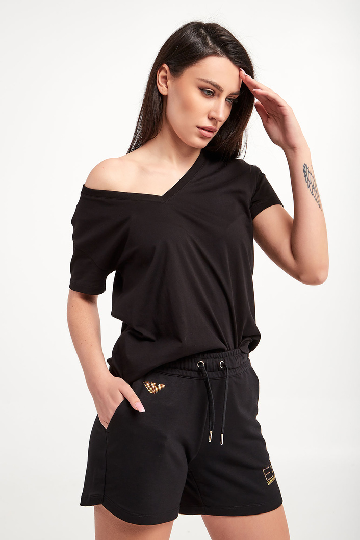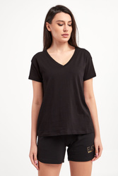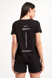 T-shirt marki Armani Exchange w czarnym kolorze. Fason typu regular fit. Dekolt typu v-neck wykończony ściągaczem. Krótkie rękawy i dół wykończone lamówką. Z tyłu biały nadruk z nazwą i logo marki. Wykonana z czystej bawełny.