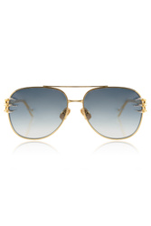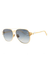 Okulary marki Anna Karin Karlsson w złoto-srebrnym kolorze. Model w typie pilotek. Wyprofilowane zauszniki zwieńczone ozdobą w kształcie łap. Ruchome noski. Szkła w ciemnoszarym kolorze.