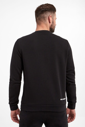 Bluza marki Karl Lagerfeld w czarnym kolorze. Model pochodzi z linii "Karl Cares", która wspiera zrównoważoną modę. Fason regular fit. Z przodu biały, kontrastujący nadruk z nazwą marki. Dekolt typu o-neck, długie rękawy i dół wykończone elastycznymi ściągaczami. Wykonana z miękkiej, elastycznej, bawełnianej tkaniny.