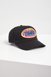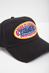 Czapka marki Dsquared2 w czarnym kolorze. Z dużą kolorową naszywką. Z tyłu, nad regulacją, wyszyty żółty napis. Na daszku ozdobne przeszycia i przetarcia. Wygodna i przewiewna. Wykonana z czystej bawełny.