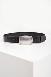 Pasek męski marki Dsquared2 w czarnym kolorze. Wykonany z naturalnej skóry. Zapinany na dużą metalową klamrę z tłoczona nazwą marki w srebrnym kolorze.