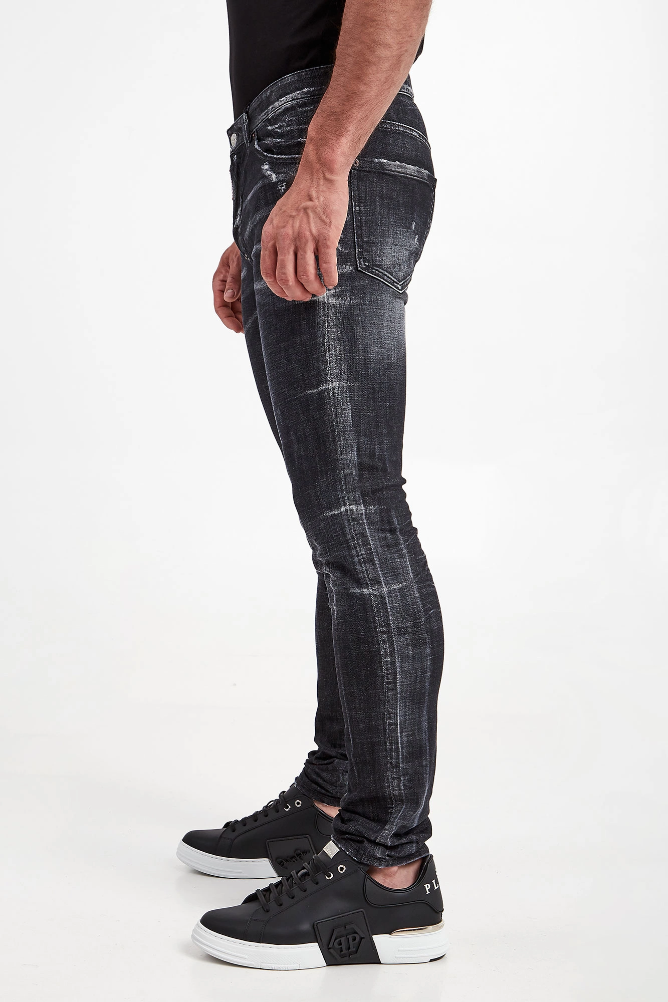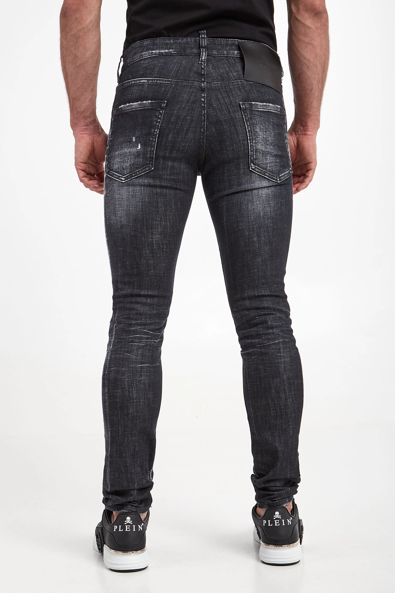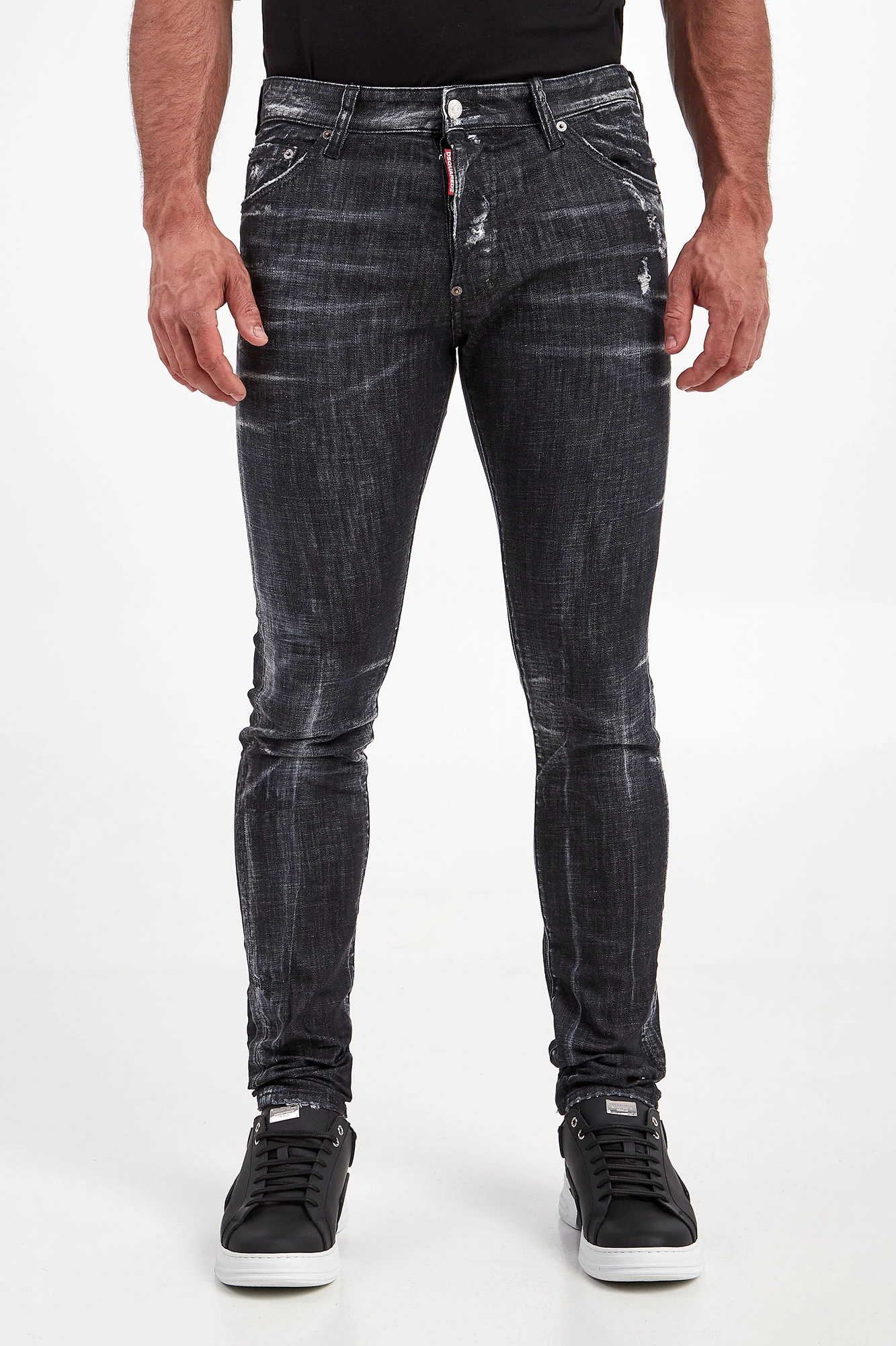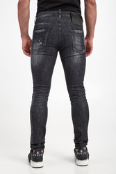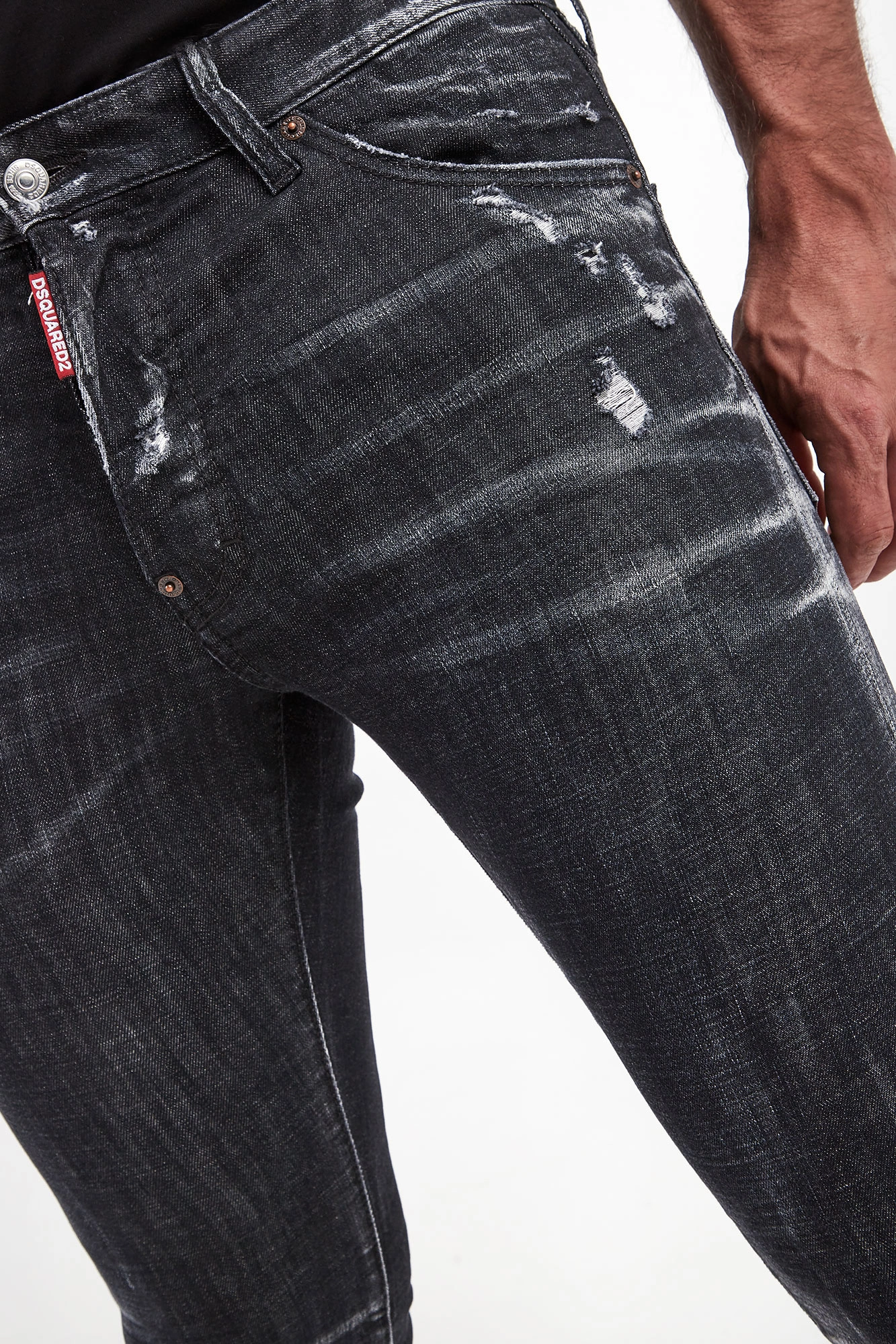 Jeansy marki Dsquared2 w szarym kolorze. Autorski fason cool guy jean. Na całości efekt sprania. Przy lewej kieszeni z przodu delikatne przetarcia. Zapinane za pomocą sygnowanych guzików. Model z pięcioma kieszeniami. W pasie szlufki. Z tyłu, w pasie skórzana aplikacja z wytłoczoną nazwą marki. Wykonane z bawełnianej tkaniny z dodatkiem elastycznych włókien.