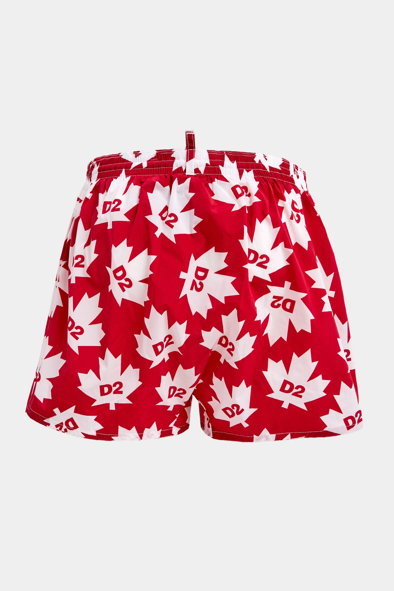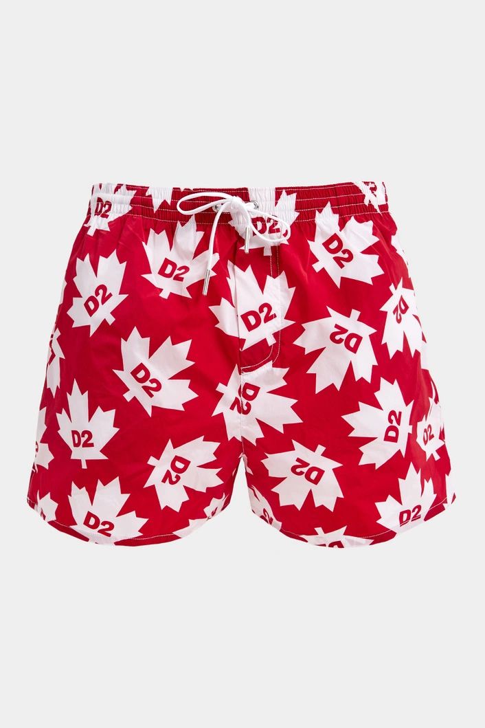 Szorty kąpielowe marki Dsquared2 w kolorze czerwonym. Na całości biały wzór z logo. Fason regular fit. Dwie boczne kieszenie. Pas ze ściągaczem regulowany sygnowanymi troczkami. Wykonane z lekkiej tkaniny.
