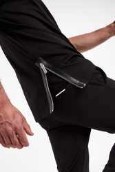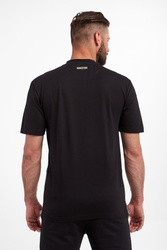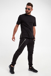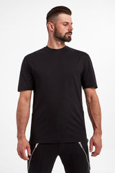 T-shirt marki Les Hommes w czarnym kolorze. Fason regular fit. U dołu masywne zamki ozdobione skórzany wstawkami. Dekolt typu o-neck zakończony ściągaczem. Krótkie rękawy i dół wykończone lamówką. Na linii karku srebrna zawieszka z logo. Wykonany ze stuprocentowej, bawełnianej, merceryzowanej tkaniny.
