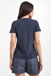 T-shirt marki Aeronautica Militare w granatowym kolorze. Fason typu regular fit. Na froncie granatowo-biały haft z logo oraz kolorowy nadruk. Dekolt typu o-neck zakończony ściągaczem. Krótkie rękawy wykończone lamówką. Wykonany z czystej bawełny.