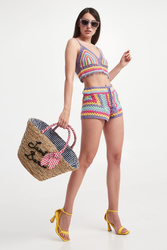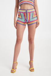 Spodenki marki MC2 Saint Barth. Wielokolorowe. Spodenki ręcznie dziergane. Fason slim fit. W pasie liliowe troczki zakończone chwostami. Nogawki wykończone lamówką. Wykonane z ażurowej, czystej, bawełnianej tkaniny.