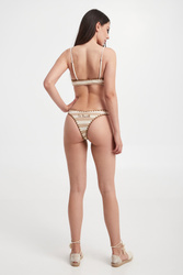 Góra od bikini marki MC2 Saint Barth w kolorach beżowych. Na całości wzór w paski. Cienkie, regulowane ramiączka. Wykonana w większości z tkaniny bawełnianej.