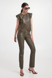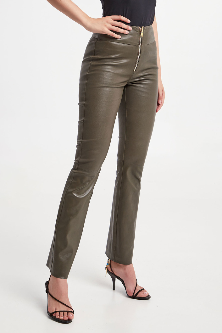 Spodenki marki Notes du Nord w kolorze khaki. Fason typu regular fit. Zapinane z przodu za pomocą zamka w złotym kolorze. Wykonane z naturalnej, jagnięcej skóry. Mogą pojawić się nieregularne przebarwienia.