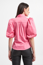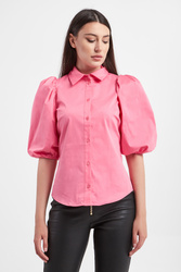 Koszula marki Notes du Nord w intensywnym, różowym kolorze. Fason typu slim. Klasyczny kołnierz. Zapinana za pomocą perłowych guzików. Bufiaste rękawy wykończone elastycznym ściągaczem. Wykonana z bawełnianej, lekko elastycznej popeliny.