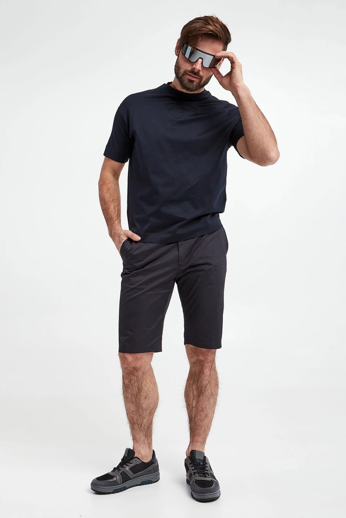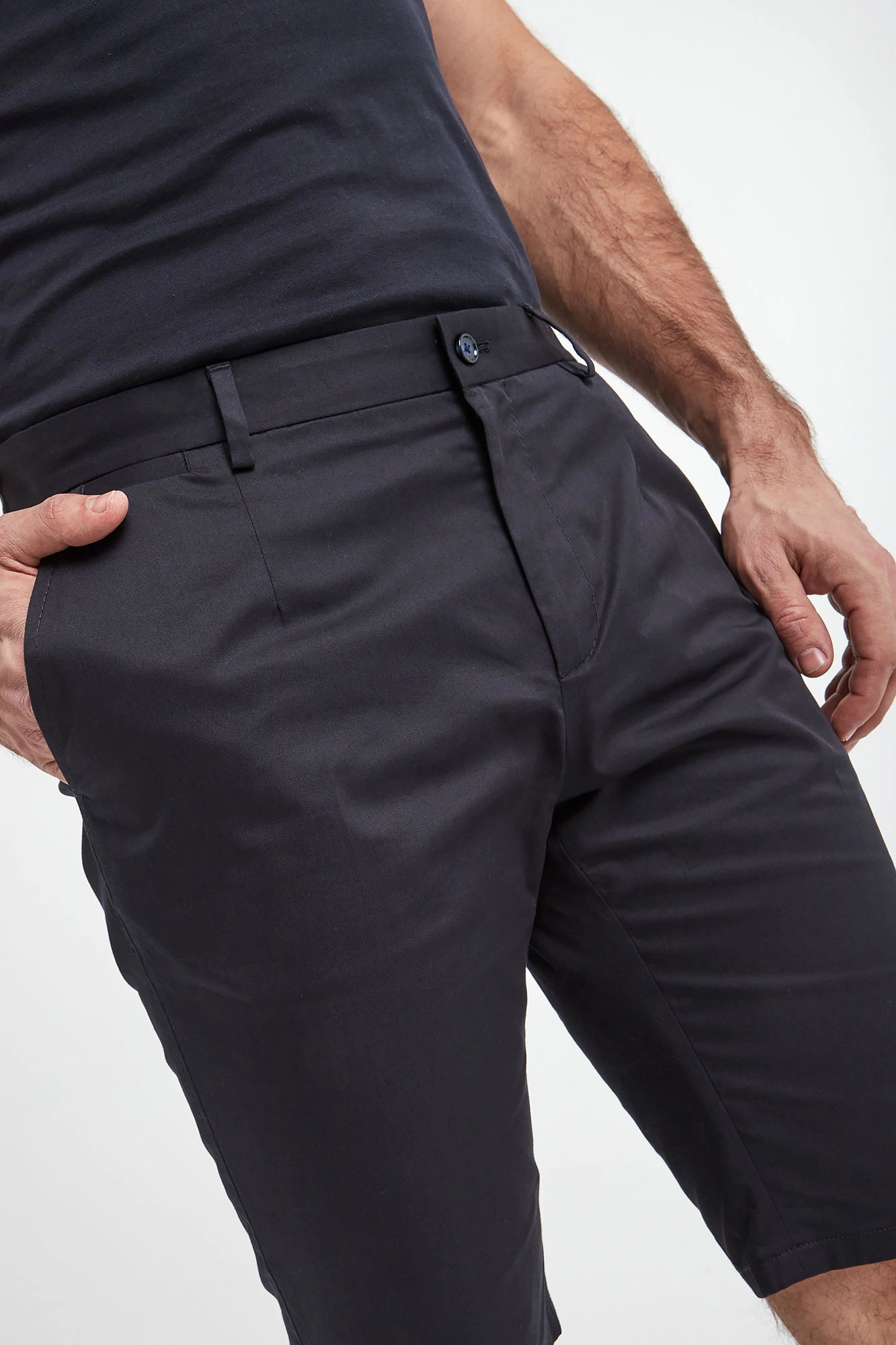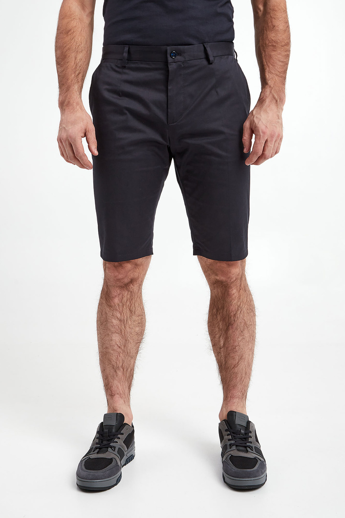 Bermudy marki Dolce & Gabbana w kolorze granatowym. Model z czterema wsuwanymi kieszeniami. W pasie szlufki. Zapinane za pomocą sygnowanego zamka błyskawicznego i guzika. Wykonane z bawełny. Fason regular.