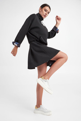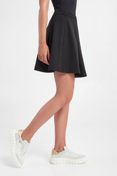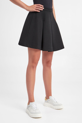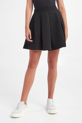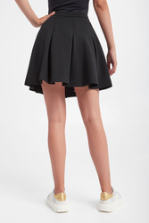 Spódnica Emporio Armani w czarnym kolorze. Rozkloszowana z plisami na całości. Długość mini. Po boku zamek błyskawiczny. Podszewka wykończona wielokolorowym wzorem.