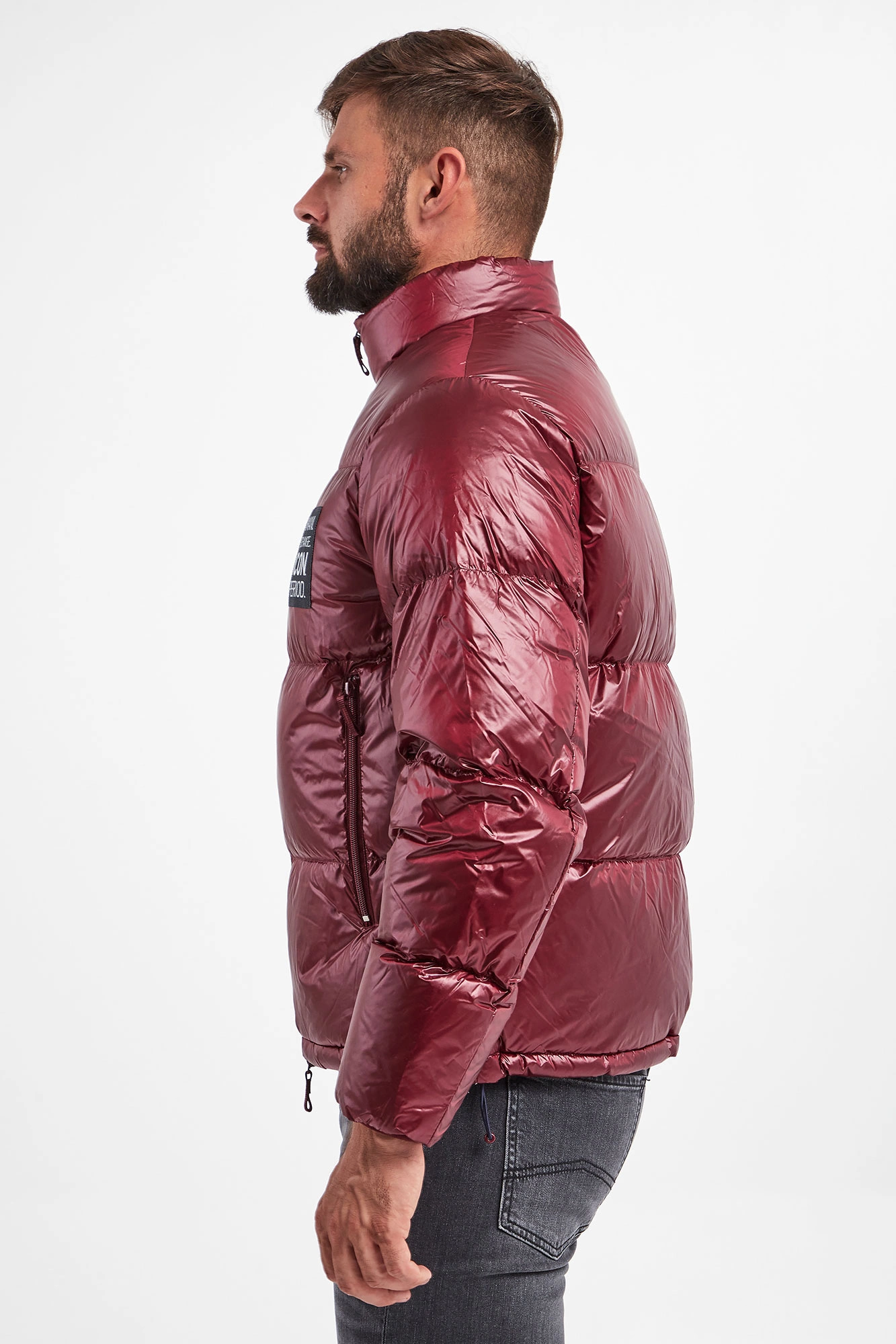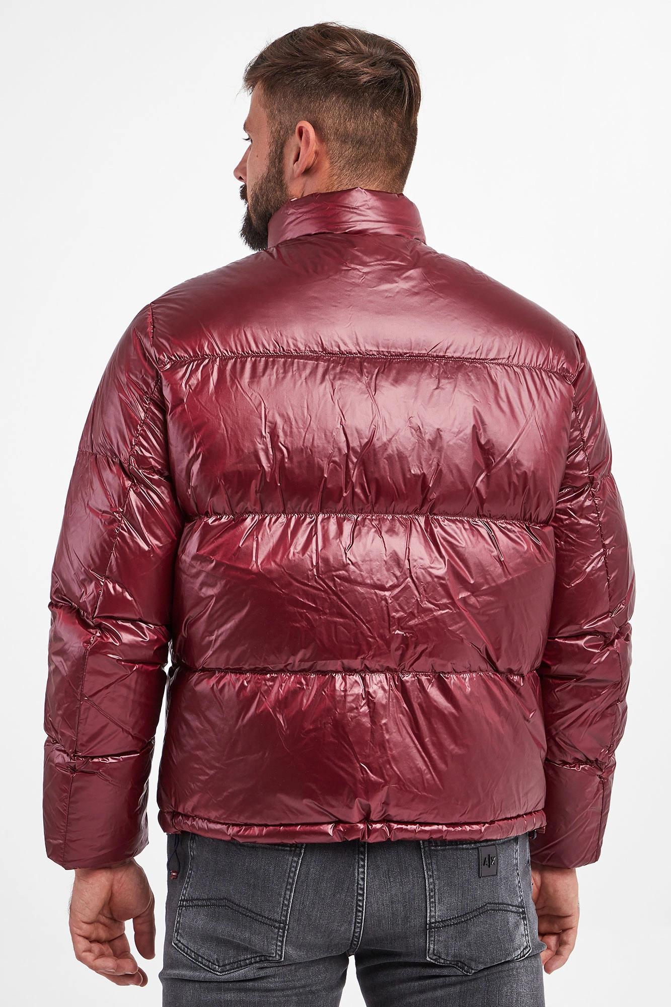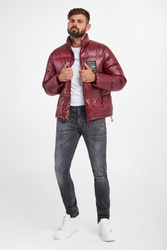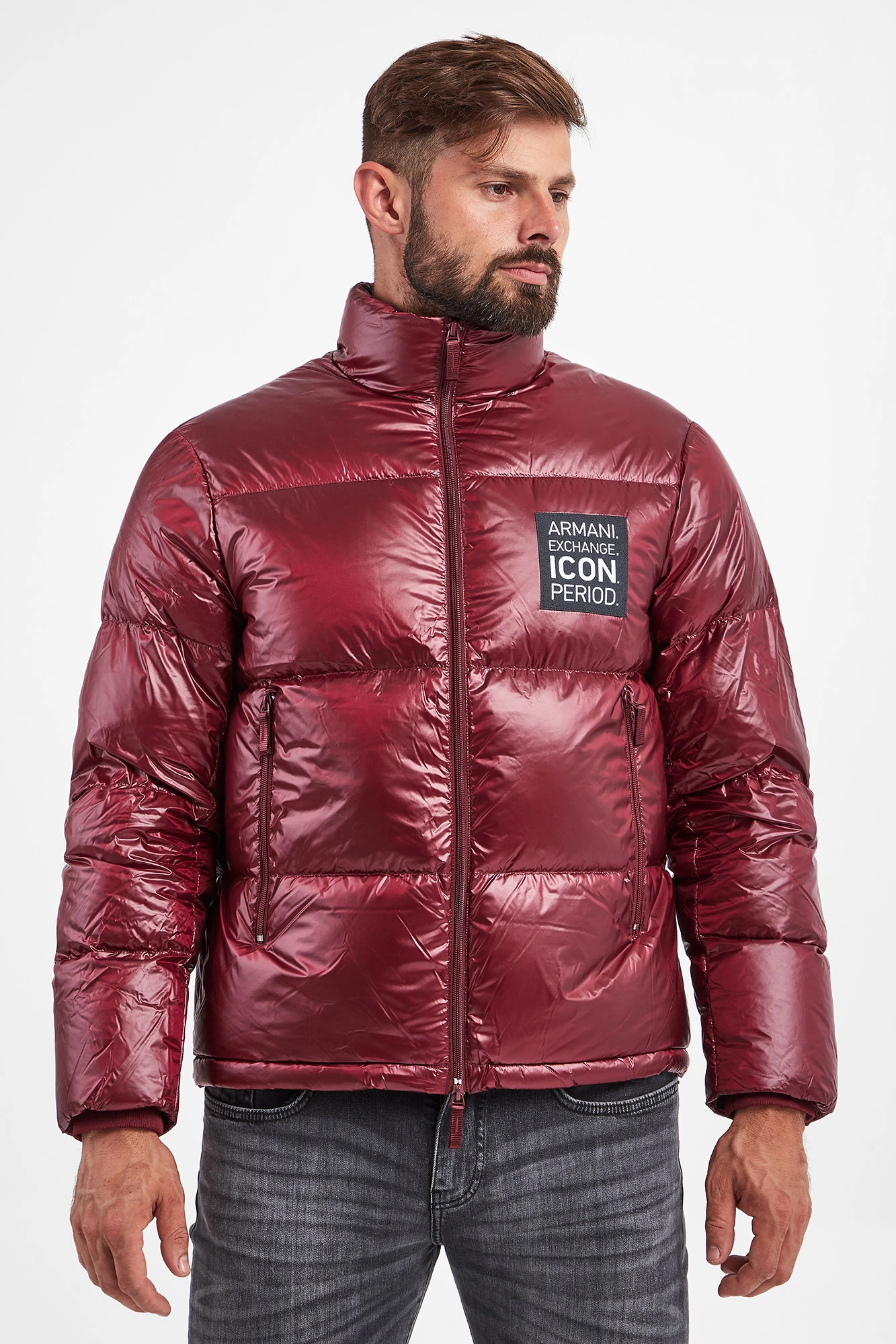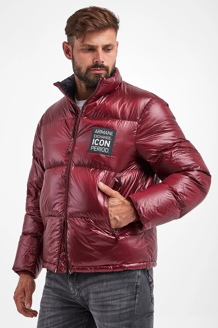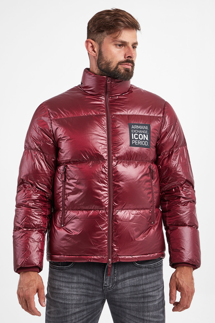 Kurtka ze stójką marki Armani Exchange w kolorze bordowym. Fason typu regular fit. Na całości poziome pikowania. Z przodu aplikacja w postaci naszywki z logo marki. Kurtka i kieszenie zapinane na sygnowane zamki. Długie rękawy wykończone elastycznym ściągaczem. U dołu ściągacz ze stoperami, umożliwiający regulację.