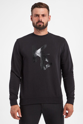 Bluza marki Karl Lagerfeld w czarnym kolorze, pochodząca z linii "Karl Cares", która wspiera zrównoważoną modę. Fason regular fit. Na froncie gumowany nadruk z monogramem marki. Dekolt typu o-neck, długie rękawy i dół zakończone lamówką. Wykonana z bawełnianej tkaniny z dodatkiem elastycznych włókien.