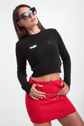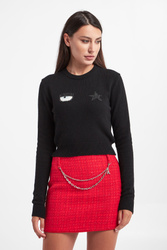 Wełniany sweter marki Chiara Ferragni w czarnym kolorze. Z przodu haftowane logo marki. Długie rękawy, dekolt typu o-neck i dół wykończone elastycznym ściągaczem. Prosty fason regular fit. Wykonany z elastycznej mieszanki wiskozy, wełny i kaszmiru.