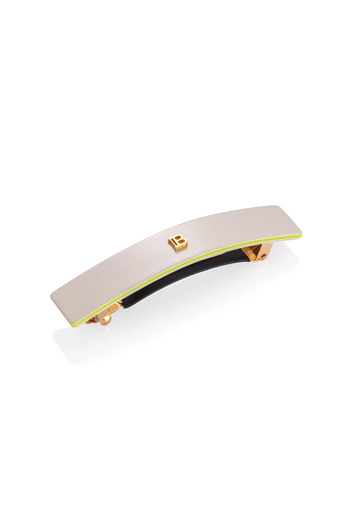 Spinka do włosów marki Balmain Paris Hair Couture w kolorze nude, z neonowym akcentem. Luksusowa, ręcznie wykonana, z pozłacanym 18-karatowym złotem logotypem. Pochodząca z kultowej kolekcji Les Accessoires, doskonała na każdą okazję, natychmiast dodaje szyku i klasy każdej stylizacji. Wyposażona w oryginalny, francuski klips.