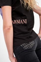 T-shirt marki Emporio Armani w czarnym kolorze. Z przodu duży kolorowy haft z logo i nazwą marki. Fason typu regular fit. Dekolt typu o-neck zakończony lamówką. Krótkie rękawy wykończone przeszyciem. Wykonana z czystej bawełny.