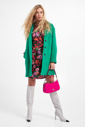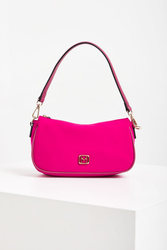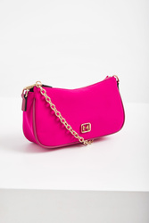 Torebka marki Marella w fuksjowym kolorze. Na froncie metalowy, złoty monogram. Zapinana za pomocą zamka. Do noszenia na ciemnoróżowym pasku lub złotym łańcuszku.
